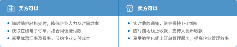 爲全球買家與賣家提供聯動平臺及安全增值服務,B2B跨境支付更便捷。